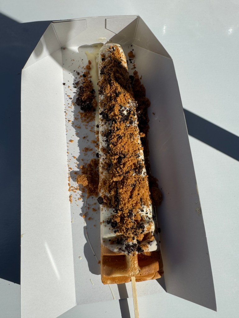 It’s more than just waffles. It’s waffles on a stick! If that’s not cool enough for you, why not enjoy one of our delicious ‘waffle trays!’